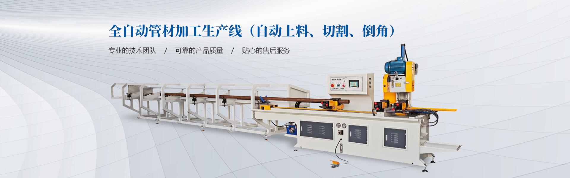 我公司具備雄厚的設計研發能力,先后研制開發了CNC數控彎管機,CNC數控管端成型機,CNC數控金屬圓鋸機,單頭/雙頭倒角機,CNC數控磨齒機等自動化管材加工機械及生產線。為航空航天、重工工程機械、核能核電、風能熱電、造船游艇、汽車零部件、機動車車架、空調制冷、體育健身器材、鋼管家具、旅游休閑用品、水暖衛浴、裝飾用材等行業的金屬管類制品的加工提供了成套,完美的自動化設備。公司可根據客戶需求設計,制造特殊規格的無人智能自動化機型以及各種非標機械設備。